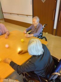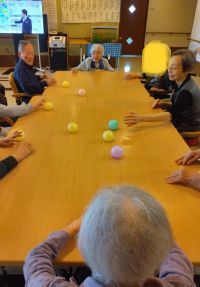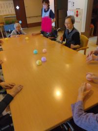 カラーボールを転がし合っていますが、入居者様動きが早いです💦周囲で玉を拾っていましたが中々にスタッフも良い運動でした(^^;