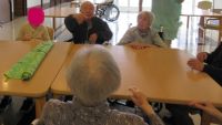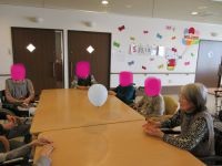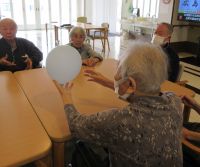 風船バレーを皆さんんで楽しんでおられます(^^♪ 上を向くことが少ないので良い首の運動になるのではないでしょうか?(^^)