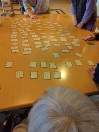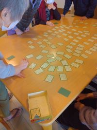 難しいかなぁ~と思いながら始めましたが・・入居者様白熱です!!座っていた方も立ち上がり真剣に札を探していました。読み手のスタッフの方が慣れずたじたじでした(笑)横からこそっと読み方を教えてくださる入居者様もおり楽しく最後までとりきりました(^^♪