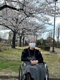 今週は桜見物に公園までお出かけです(^^♪1Gの方はこちらで~す。風が強くて少し肌寒い感じでしたが、桜が見頃でしたので入居者様も喜ばれておりました。