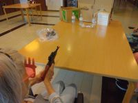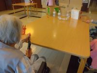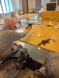 午後の時間はホールで射的遊び、皆さん段々集まってきて夢中で遊ばれていました。跳ね返り防止用にかけたサングラスが可愛いですね(^^♪