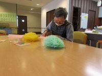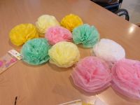お花紙でお花作りです。真剣に作られていますね(^^♪ 出来上がったお花は綺麗に作れていました~