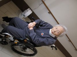 足の屈伸をして、準備してから起立練習をしましょう!!声をかけるとカメラ目線で振り向いてくれました(^^♪