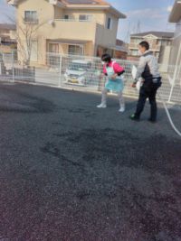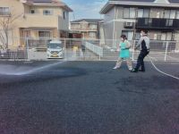 避難の次は消火器と散水栓の訓練を駐車場にて行いました。万が一が無ければ良いですが、乾燥していますので、常に取り扱えるようにしておくことが必要ですね。