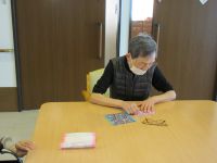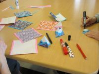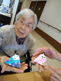 折り紙でお雛様を作っています(^^♪ 丁寧に角を合わせ上手に作られていました。