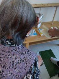 新しく作った図書コーナーで本を選び中です。気になる本はあったでしょうか?