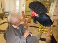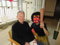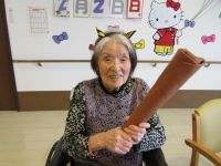 皆さんで鬼退治~ですが何故か笑顔ですね(笑)丸めた紙を鬼に向かって思う存分投げて下さい!!