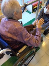 リハビリ中ですがお話に夢中です。リハビリも笑顔を見せてくれてますね(^^)
