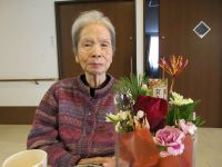 施設内のお正月飾りも増えています(^^♪入居者様も綺麗なお花に笑顔です。