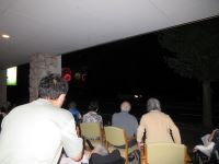 今日は藤岡の花火です(^^♪5年に1度のお楽しみ。入居者様と外へ出てスタンバイ。