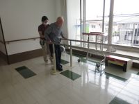 平行棒のリハビリから歩行器での歩行まで頑張っておられます。疲れてないですか?と尋ねると「まだ歩けるよ~」と笑顔で返してくれました(^^) これからも継続して歩行練習しましょう!