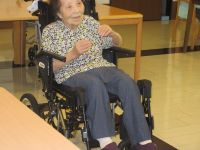 午後のリハビリ体操を一生懸命スタッフの動作を見ながら真似てくれています。体を動かすと気持ち良いですね(^^♪