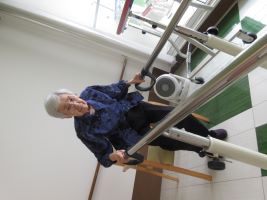 今日も頑張ってリハビリです。しっかり歩行出来てますね(^^)