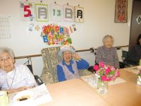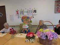 ご本人様のご希望でお友達とお誕生日会をしたい・・との事で実現しました(^^♪ 皆さんと美味しい和菓子を召し上がりながら主役のご入居者様は満面の笑みと感動の涙でした。また来年もお祝いしましょう(^^)