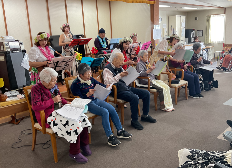 入居者様とのフラダンスの次は、入居者様有志の合唱会です。