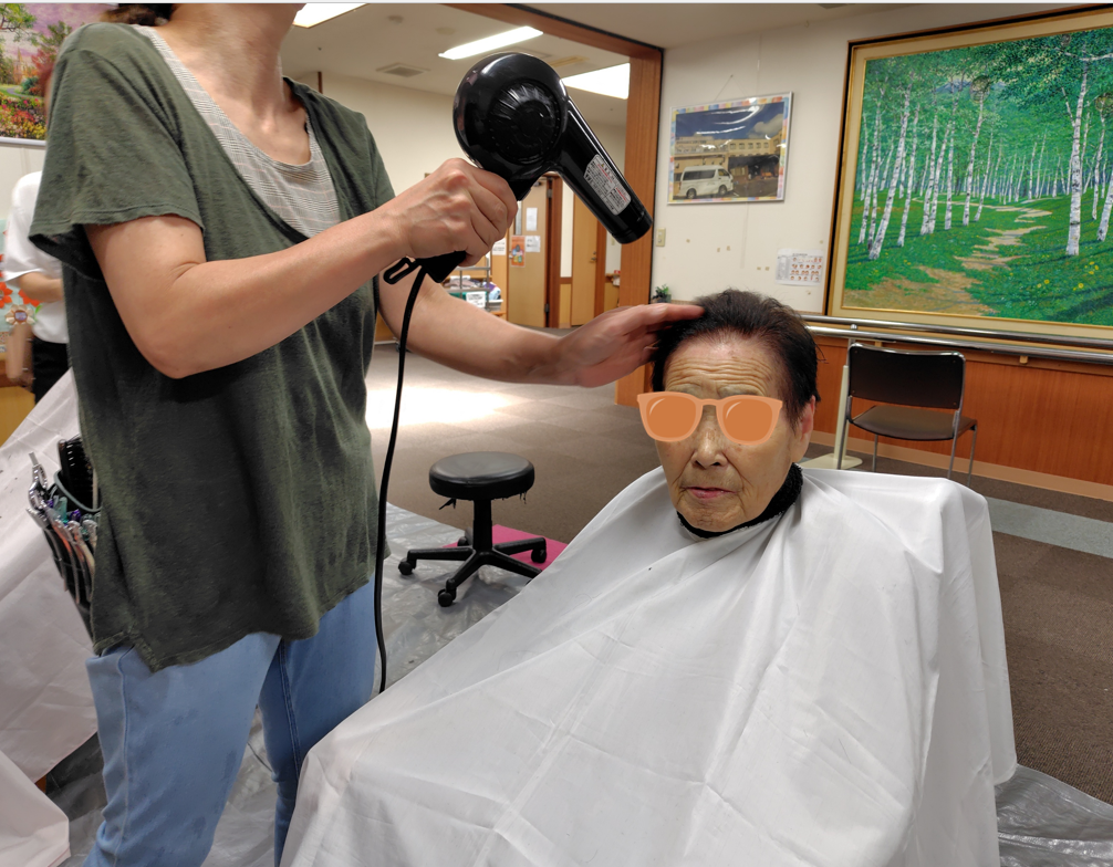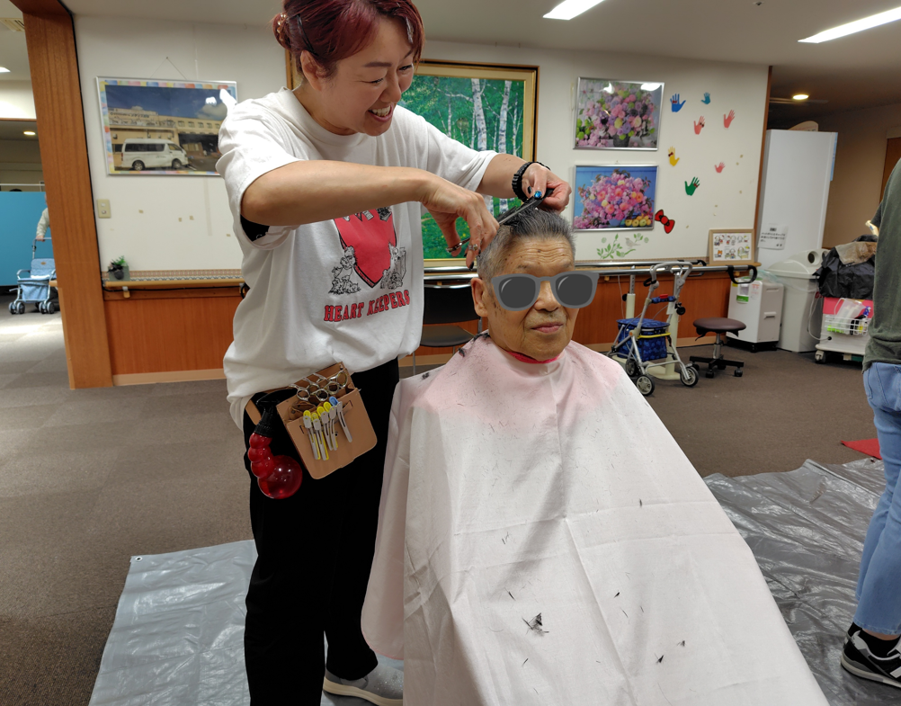 プロの理容師さんが来て毎月施設まで来て散髪や髪染め、そしてパーマなんかも希望すればやってくれます。