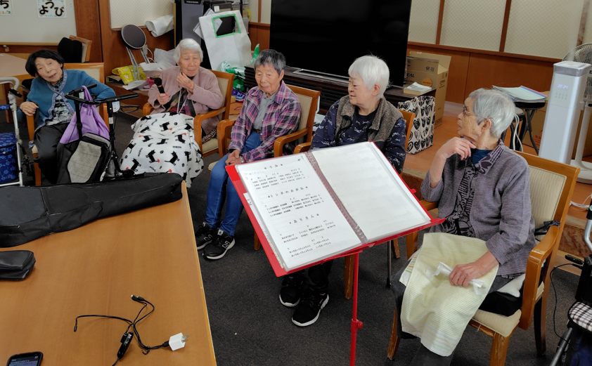そこで利用者様の有志による合唱会もプログラムに含まれているそうで、そのためのリハーサルが行われていましたよ(^^)