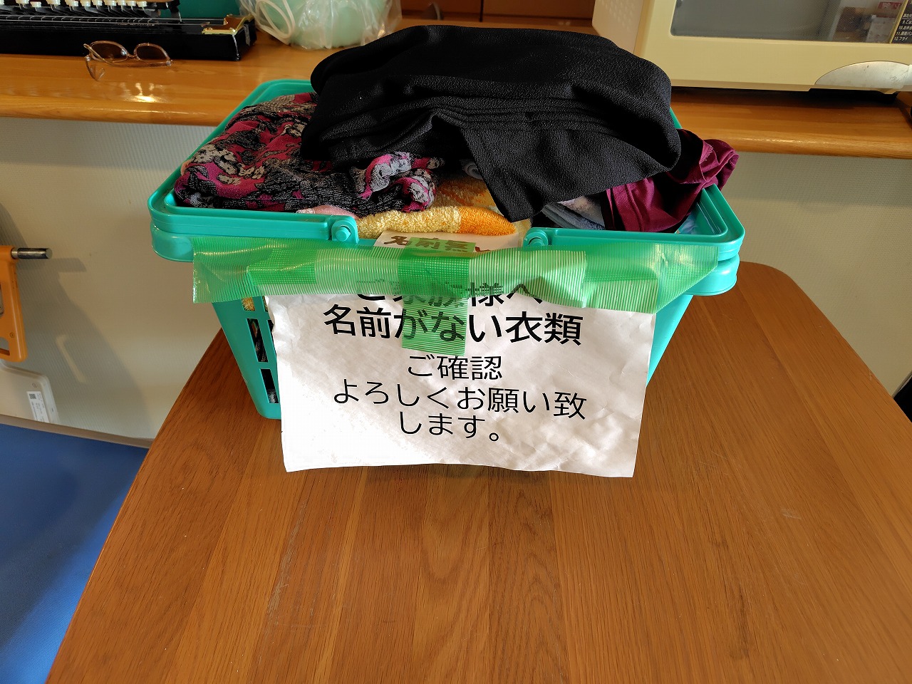 無記名の衣類一時的に保管しています。面会などでご来設の際に心当たりあればご確認ください。
