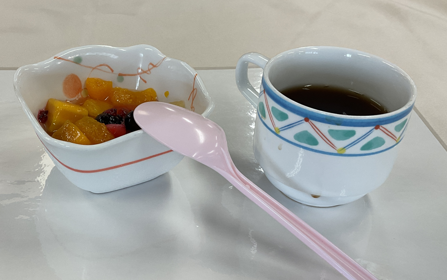 何種類ものフルーツが程よい大きさにカットされ、口の中で噛めば噛むほど甘みと酸味とうまみが混ざりあい、深みのある味に変化していくとても贅沢なスープだったようです。入居者様のみなさん満足されたようでしたよ(^^)