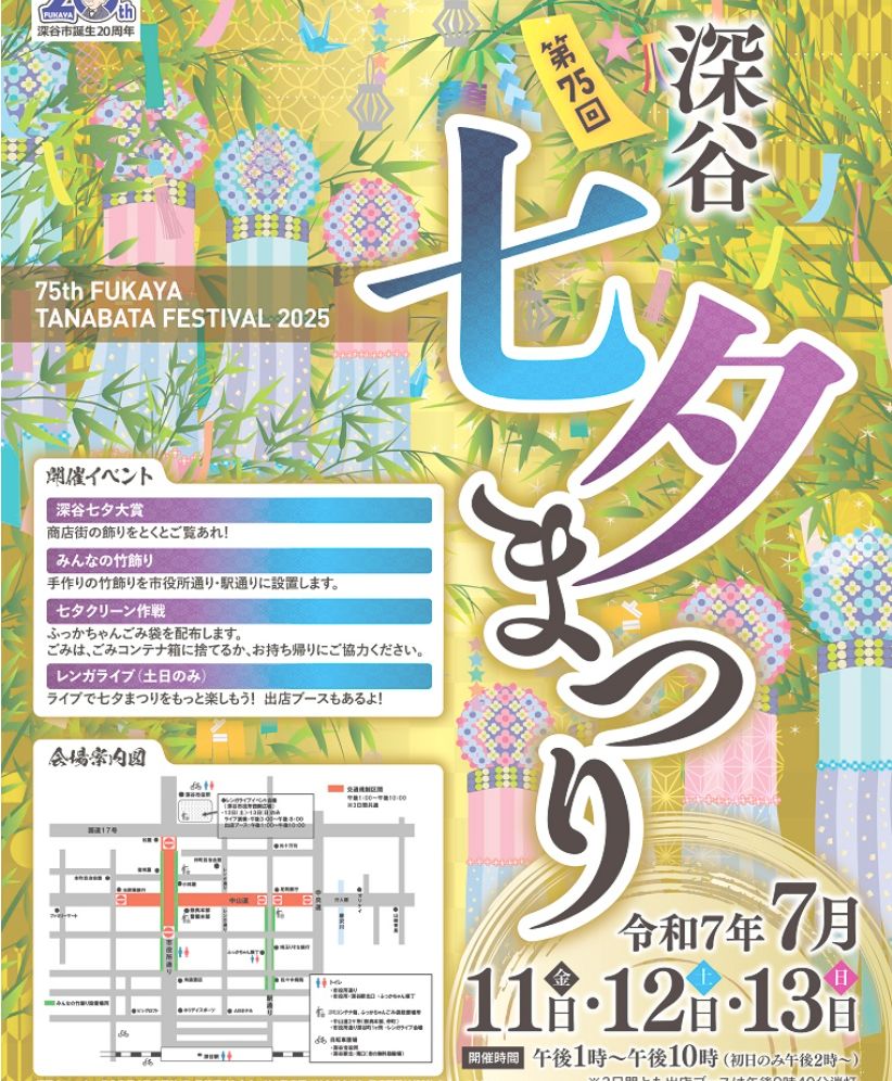 深谷周辺週末イベント情報を探していたところ、明日から深谷七夕まつりがあることが判りました!