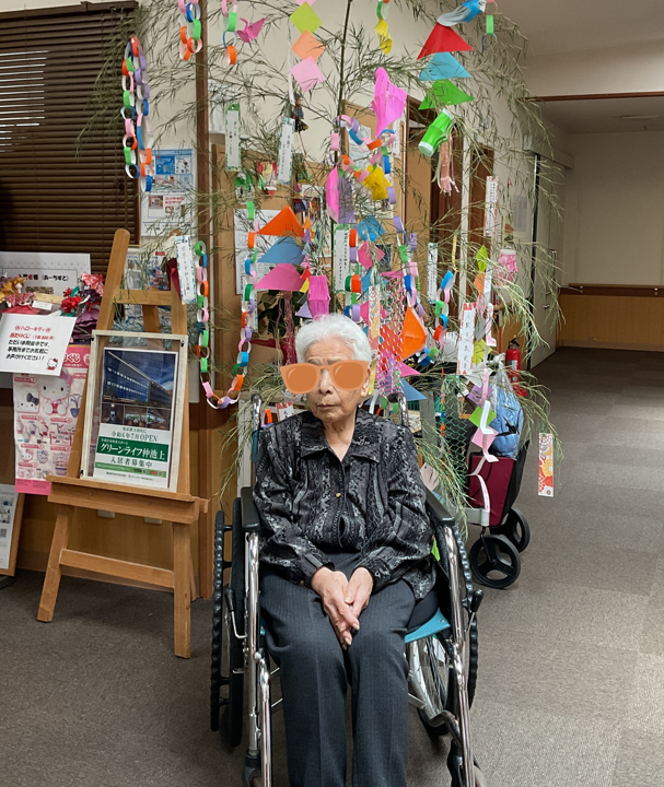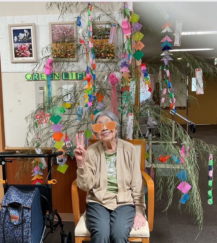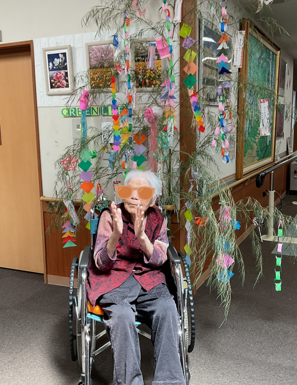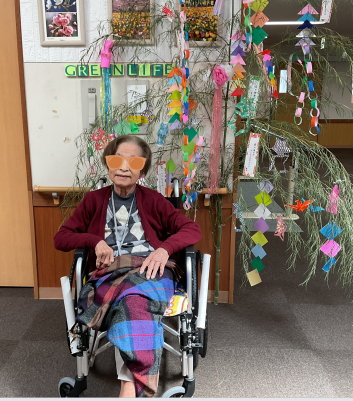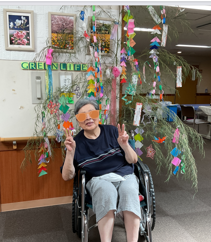 七夕飾りを作製したので記念に入居者様の記念写真を撮りましたよ(^^)