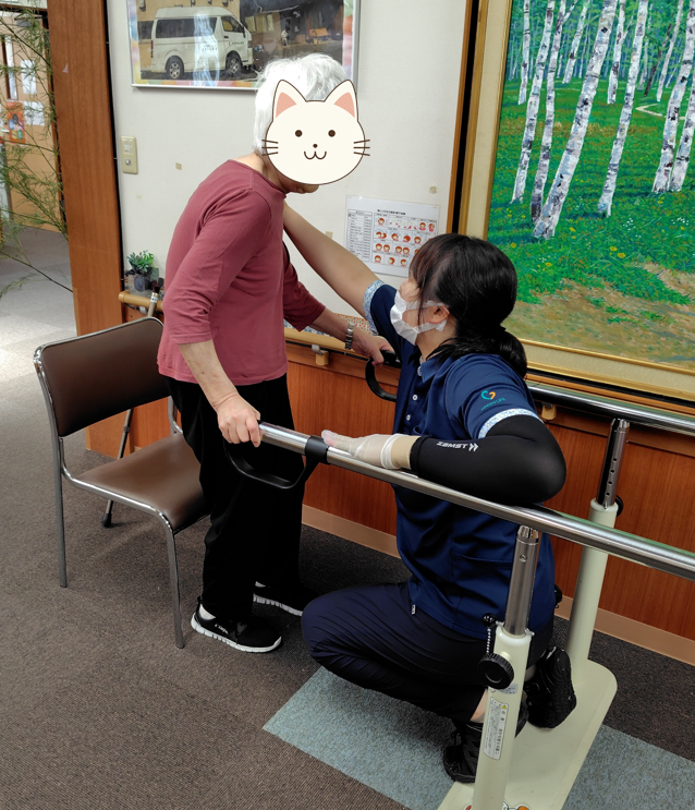 歩行はもちろんですが、歩く時の姿勢だったり、呼吸を意識したりと単純に歩くだけではなくいろんなことに気を使うよう声かけしています!