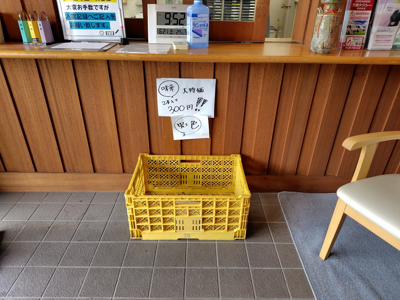 当施設の受付窓口前にゲリラ的に農産物直売所が設置されることがあるんです。