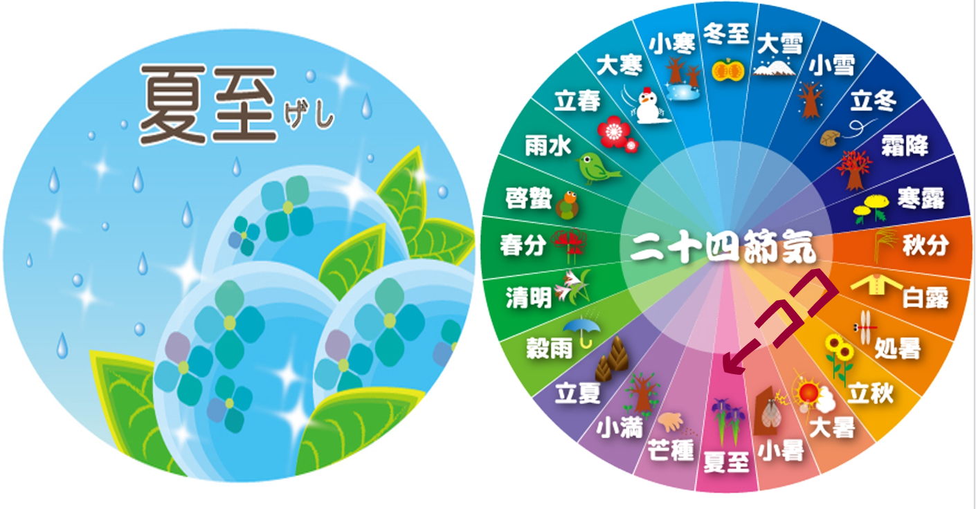 「夏至(げし)」は、「二十四節気」の一つで第10番目にあたります。