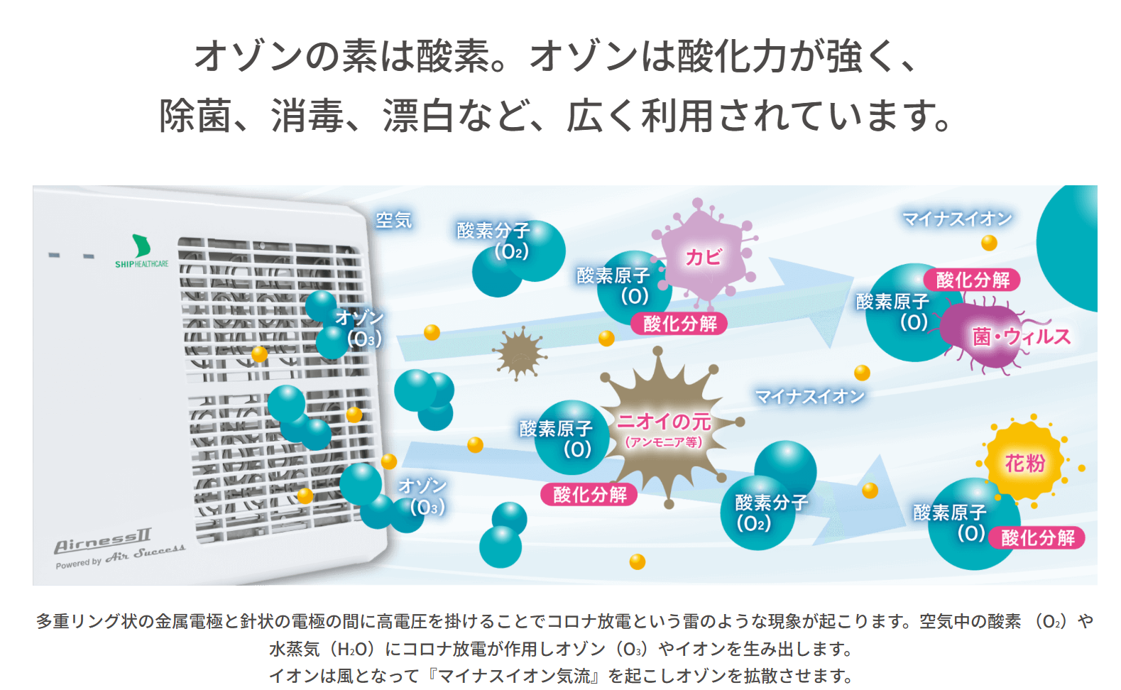 設備の効果は、空間除菌、消臭があり施設の利用者様の多くもご利用していただいています。