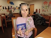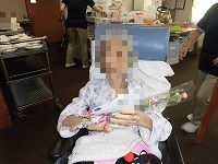 体調の悪かった方、恥ずかしがってひな壇へお出にならなかった方にも、バースデーカードと花束をお渡ししました。