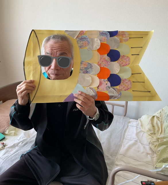 今月の対象者が全員男性ってこともあり、こいのぼりの顔出しで記念撮影しました。
