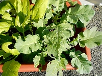 芋虫の食害を受けなかった方の野菜は、プランターから溢れんばかりに成長してきています。