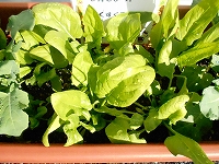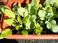 食害を受けなかった方のプランターのうち、ホウレンソウがかなり成長してきました。