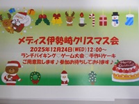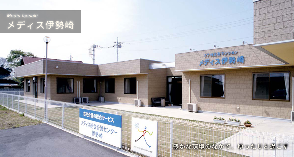 トップページ > 施設を探す > メディス伊勢崎 関連 住宅型有料老人ホーム メディス伊勢崎 施設へのお電話は 0270-30-3600 9時00分~17時30分 (365日受付) 入居に関するお問い合わせ 0120-1165-14 施設の特徴 施設概要 料金プラン 施設のアルバム ※画像をクリックすると拡大されます。 施設の特徴 空室状況 豊かな環境のなかで、ゆったりと過ごす メディス伊勢崎は、伊勢崎市の中でも田園風景の残る稲荷町に位置し、雄大な赤城の裾野が一望できる恵まれた環境の中、ゆったりと過ごすことができます。 施設長ご挨拶 施設長小野寺 由美 寄り添う介護・看護 温かい家族の様に 当施設は雄大な赤城山の裾野が一望できる恵まれた自然の中、住宅型有料老人ホームとして、入居者様が「ご自宅」と同じ様な生活を送って頂けるよう、定員21名という小規模施設ならではのおもてなしと個別性を重視した介護保険サービスのご提案をさせていだだきます。 家族のように共に笑い、共に涙するスタッフが全力で24時間生活を援助してまいります。 ご相談・ご見学等お気軽にお声かけください。宜しくお願い申し上げます。 メディス伊勢崎のアルバム 2025年12月05日メディス伊勢崎 飾りつけ ツリーが登場しました。 クリスマスが近づいてきた感じがしますね。 こちらは玄関先のツリーです。 まだまだ、施設内にはツリーがあるんですよ。 そちらは、後日ご紹介します。 関連 ・・・続きを読む 2025年12月04日メディス伊勢崎 12月と言えば・・・。 もう、12月。 そう、クリスマスの季節です。 12/24にクリスマスイベントを開催します。 関連 ・・・続きを読む 近隣施設のご紹介 グリーンライフ中央前橋 介護付有料老人ホーム グリーンライフ前橋敷島 住宅型有料老人ホーム メディス藤岡 介護付有料老人ホーム メディス高崎 介護付有料老人ホーム