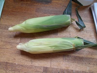 トウモロコシは皮を一枚程度残し、ラップに包み