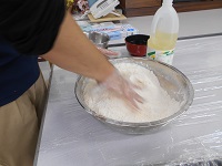 材料は、小麦粉、砂糖、ベーキングパウダー、サラダ油です。