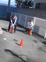 消防訓練の一環として、消化器の使用法も