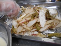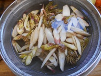 切った野菜やあく抜き中のウド。