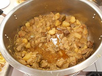 「アドボ」肉をマリネしたものを一度焼てから煮込む