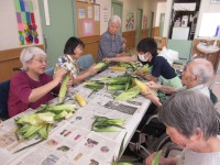 入居者様にお手伝いしていただき丁寧にむいていきます。