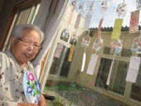 手作りの風鈴が完成し中庭の窓辺に飾りました。