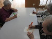 完成した絵を前に拍手が起き楽しいレクとなりました♬