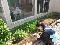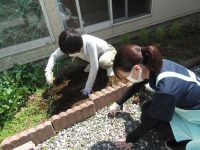 葉もだいぶ大きくなってきたので花壇へ植え替える作業を行いました。