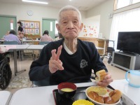2月の昼食レクは入居者様に大人気のパンバイキングです。