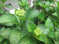 中庭の紫陽花がたくさんのつぼみを付け始めました。