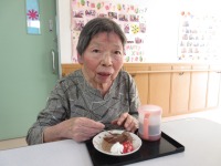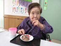 入居者様には生クリームやイチゴのトッピングをお手伝いしていただき