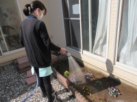中庭の花が満開と入居者様とスタッフを癒してくれていますが