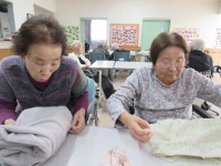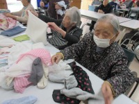 おやつの後に入居者様に洗濯畳みをお手伝いしていただきました。