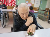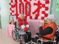 長生きの秘訣は『いつも笑顔でご飯をおいしく食べること』とのこと。