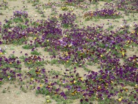 チューリップにたんぽぽ、すみれと色とりどりの花を前に
